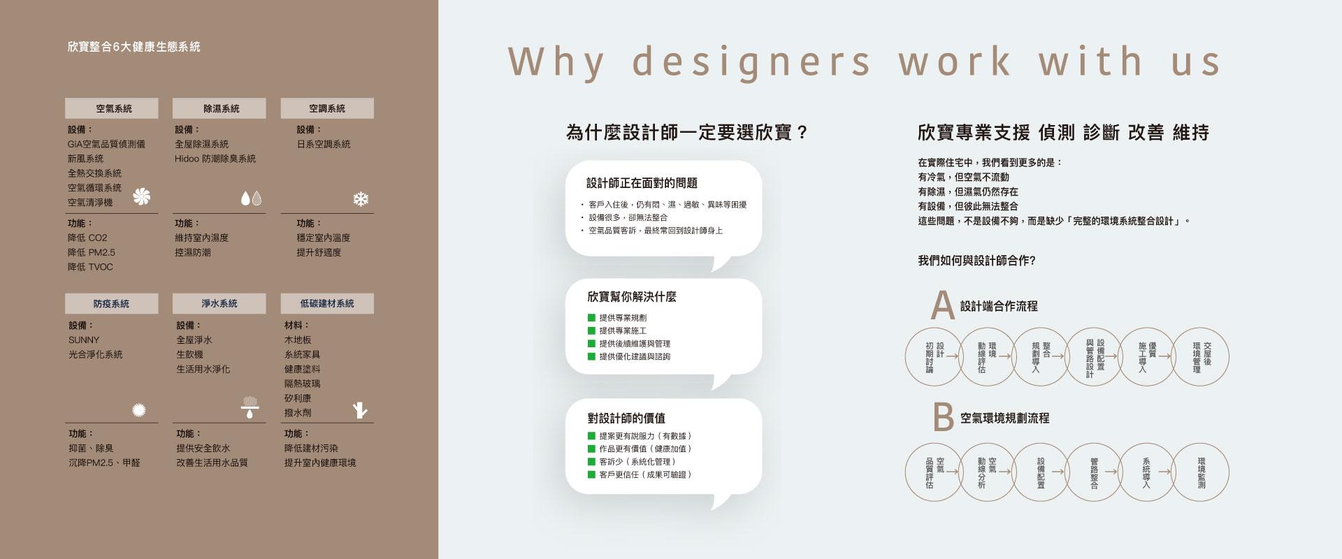 欣寶以健康的室內環境為出發點,並符合國際間針對「以人的健康為核心-綠色建築」(Well Building)所訂出的室內空氣品質偵測標準與科技,透過「偵測」、「診斷」、「改善」、「維持」四大步驟,提供「呼吸健康 健康呼吸」的室內空氣品質改善方案。