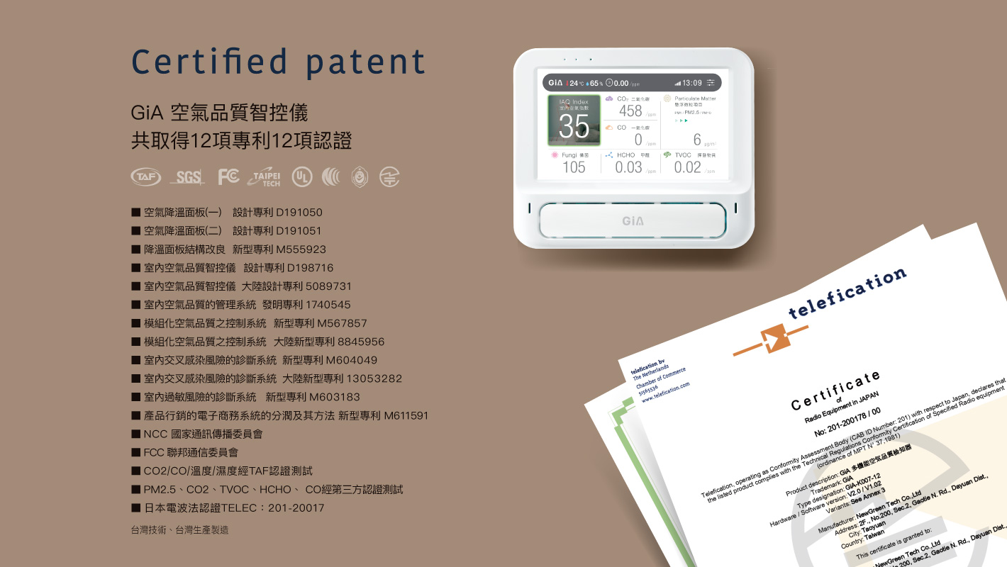 ■ PM2.5、CO2、TVOC、HCHO、 CO經第三方認證測試